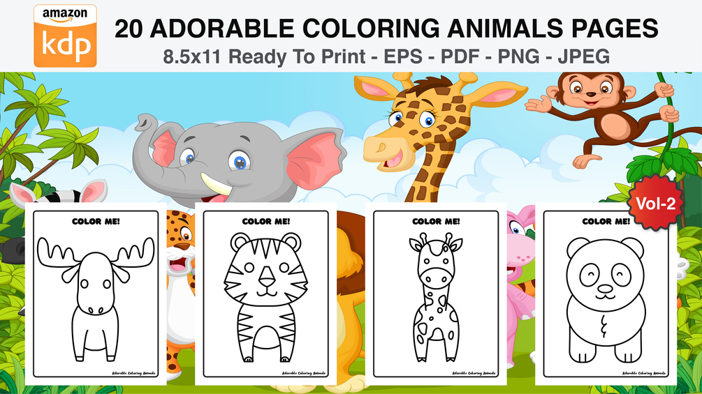 20 Adorable Coloring Animals Pages For Kdp Ready To Print – 8.5x11 - Eps - Pdf - Jpeg - Png
