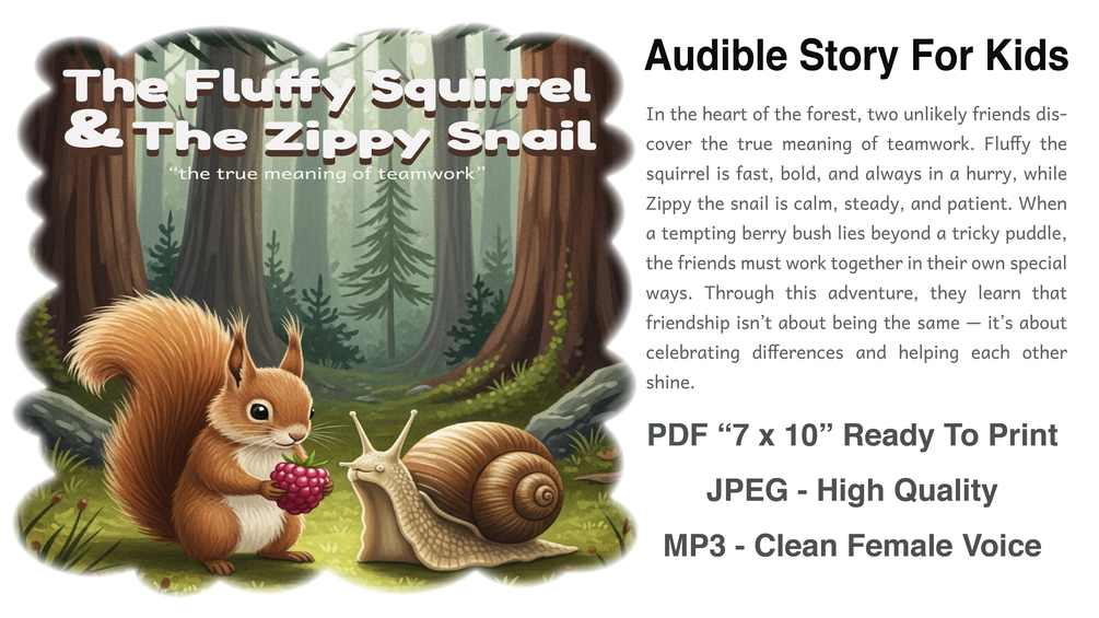 "The Fluffy Squirrel & The Zippy Snail" A Kids Audible Short Story About " The True Meaning Of Teamwork"